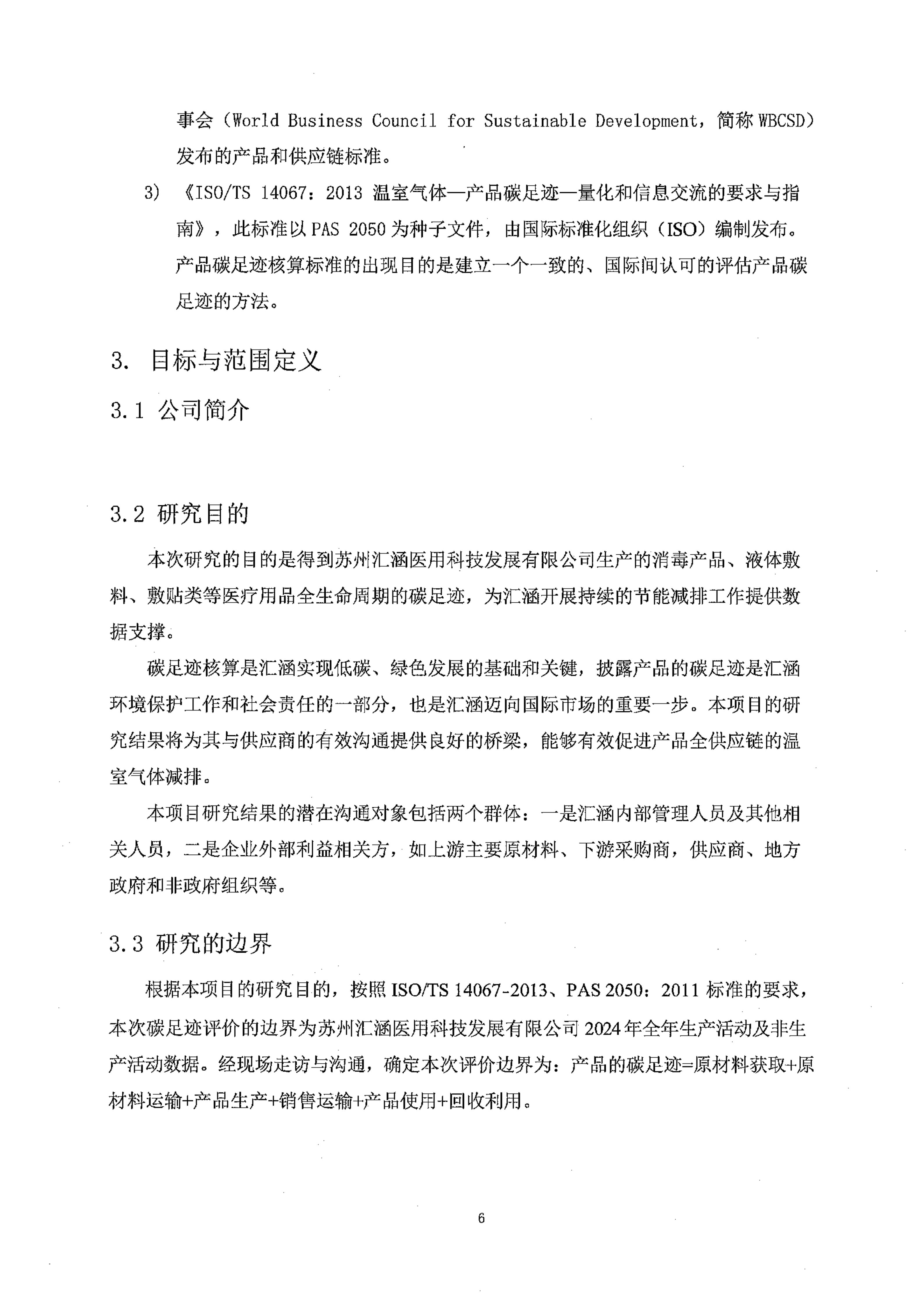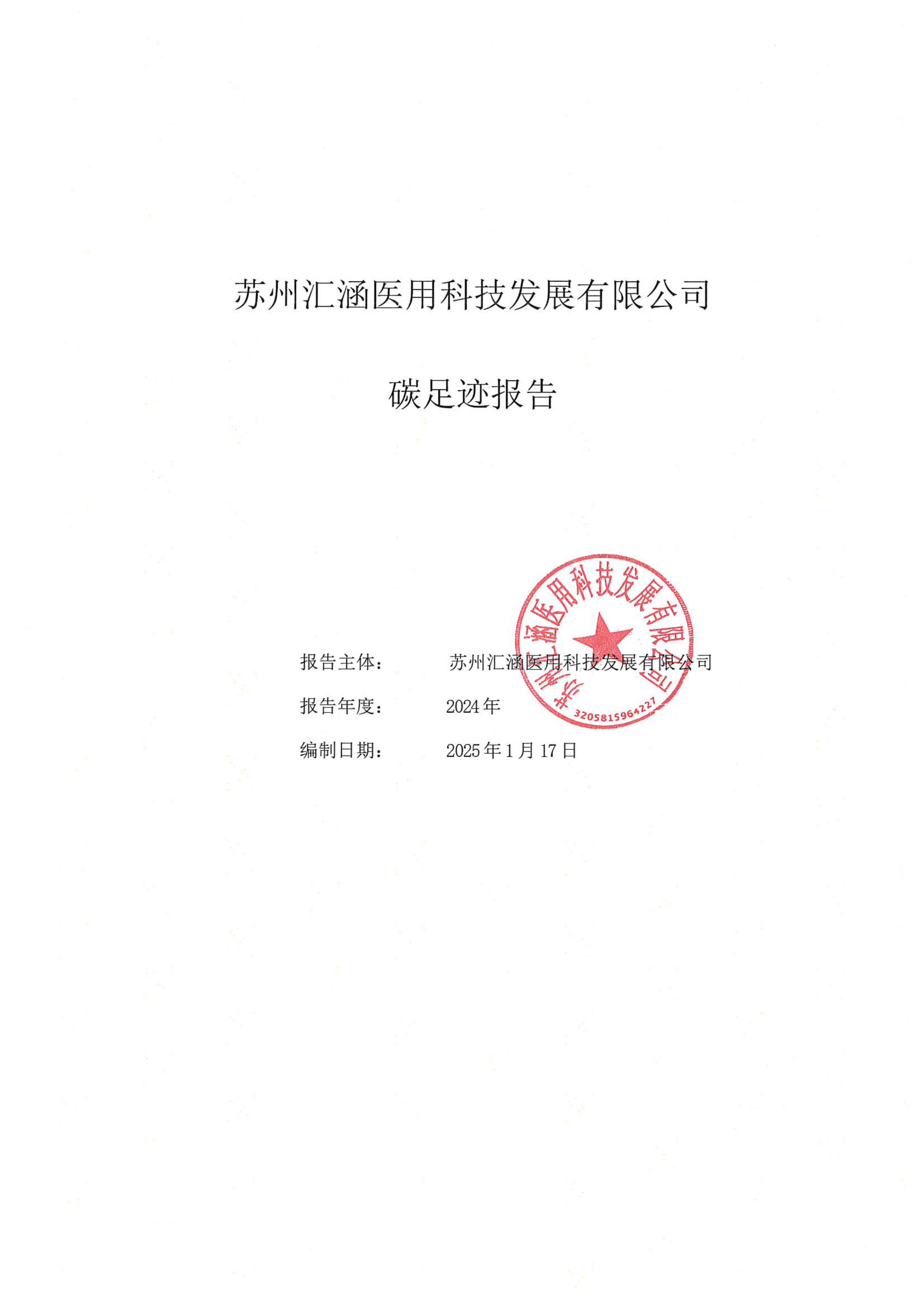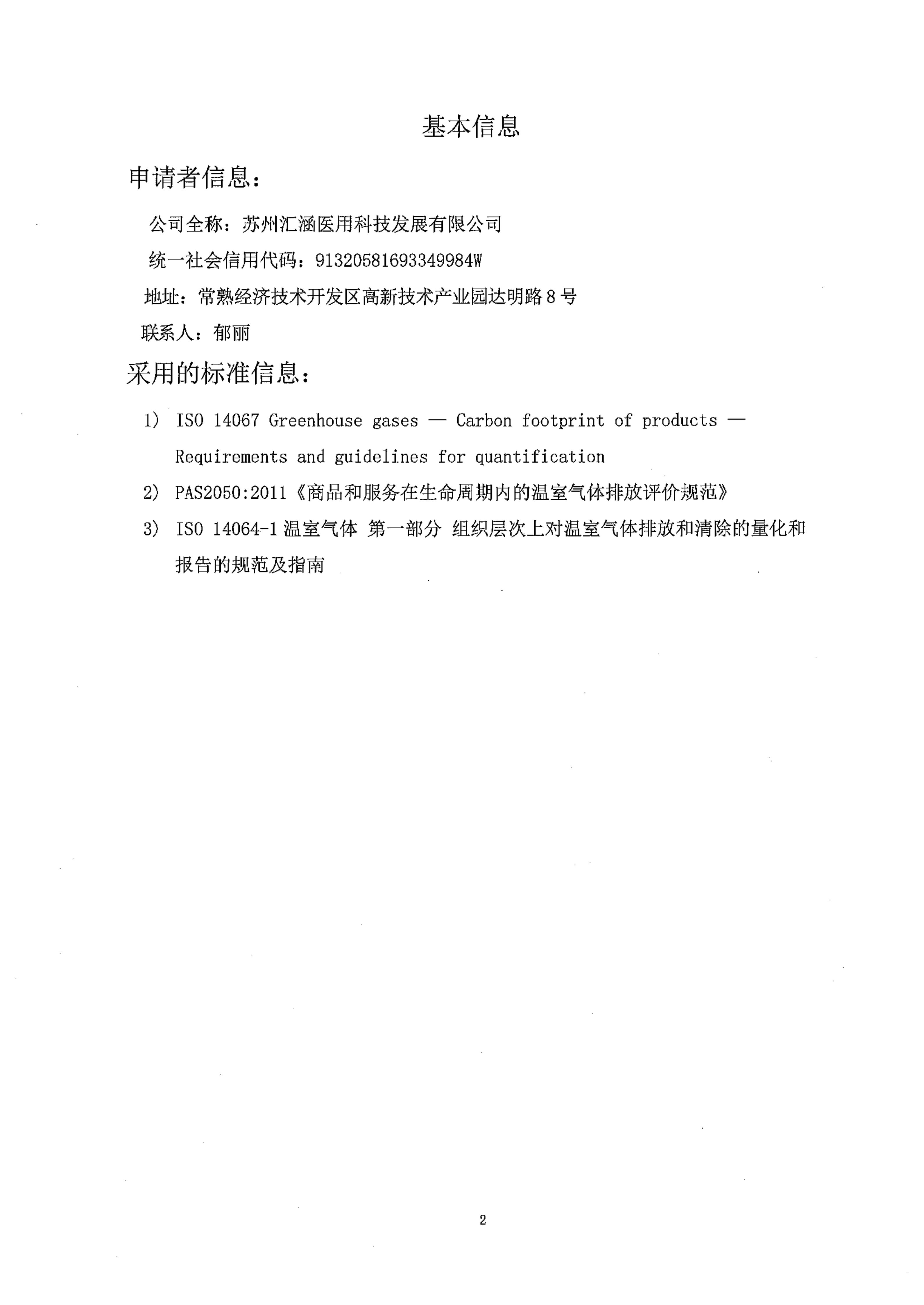 蘇州匯涵醫用科技發展有限公司碳足跡報告